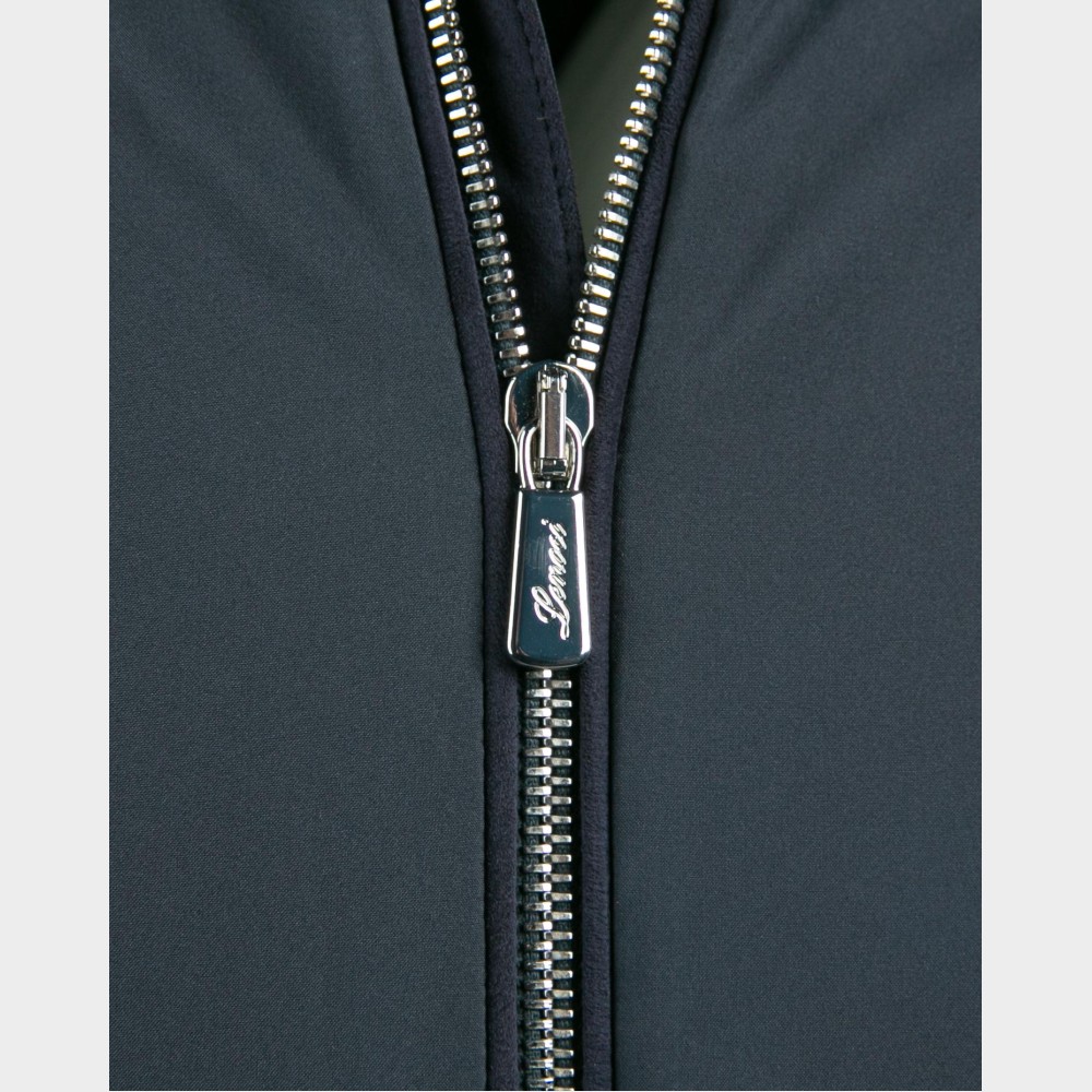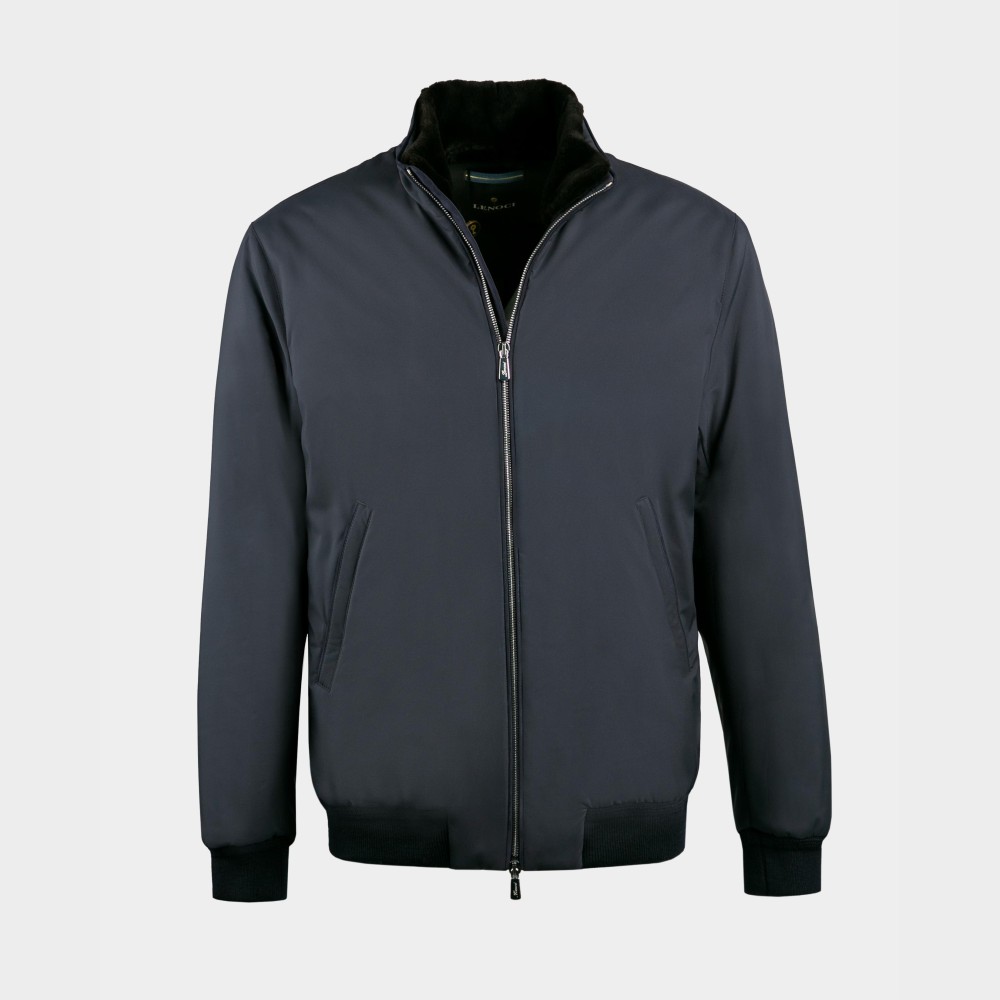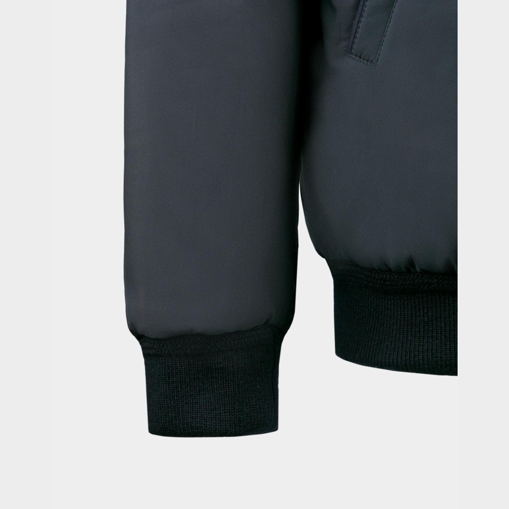 Куртка чоловіча темний синя з вставками алькантари та хутровим знімним коміром